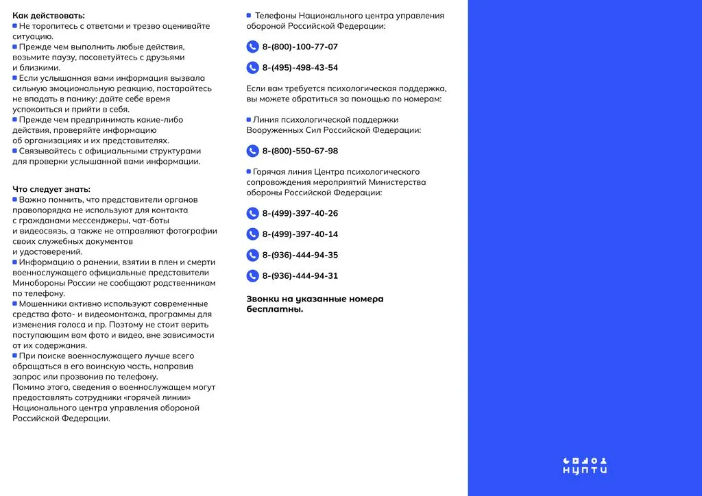 Памятка для родственников участников СВО